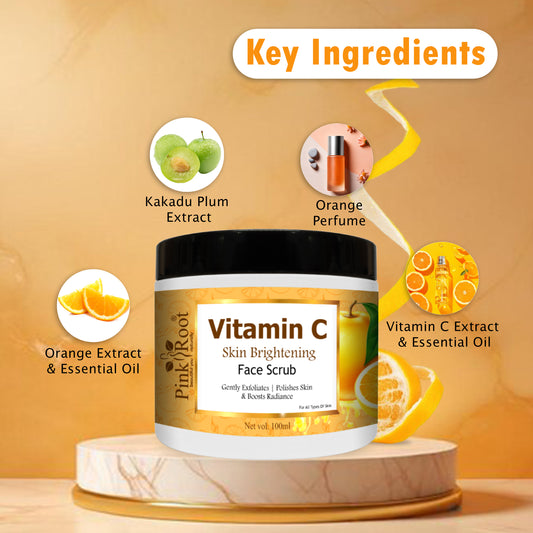PinkRoot Vitamin C Face & Body Scrub (100 g), for Tan Removal, Skin Whit...