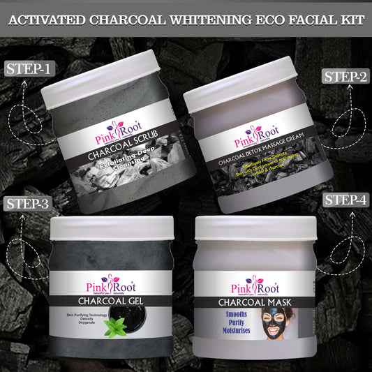 Pink Root Charcoal Eco Facial Kit , 500gm Pack of 4, for Anti Acne, Detox Ski...