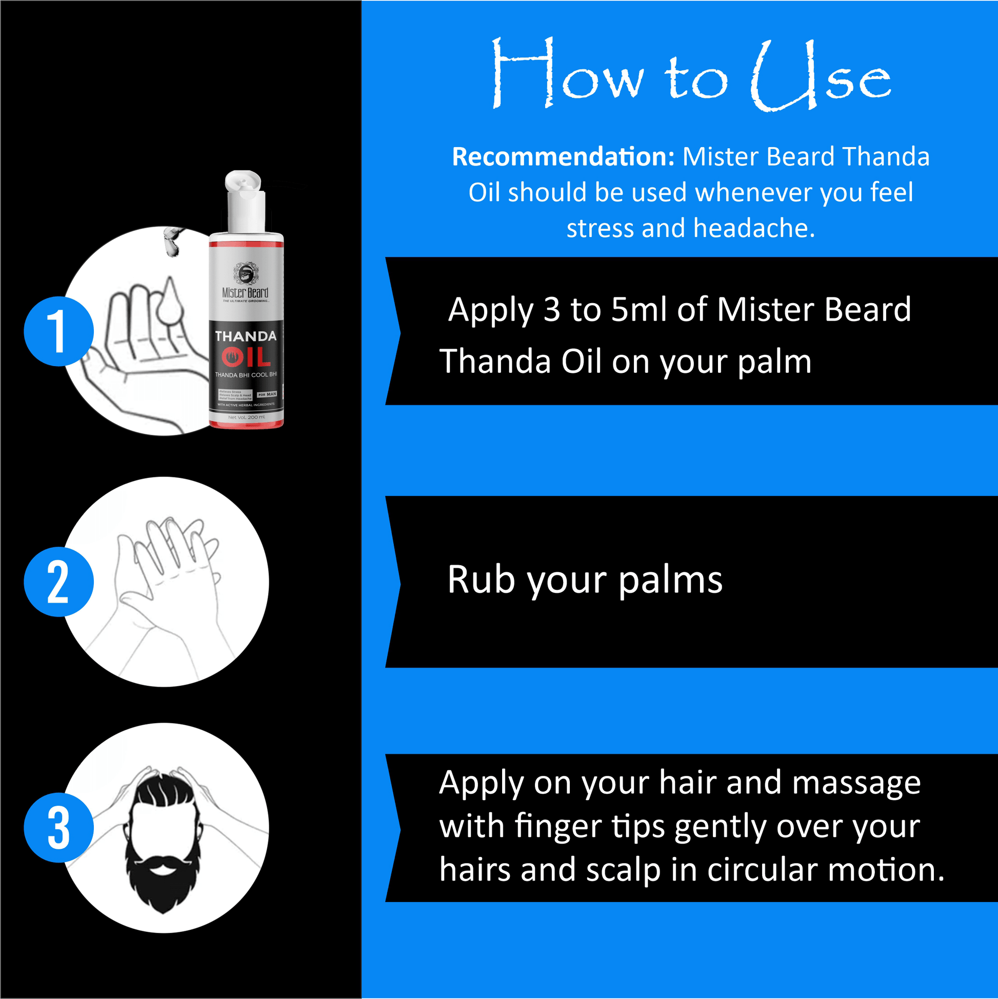 Mister Beard Thanda Cool & Refreshing Hair Oil for Pain Relief Relaxation Hair Oil (200 ml)