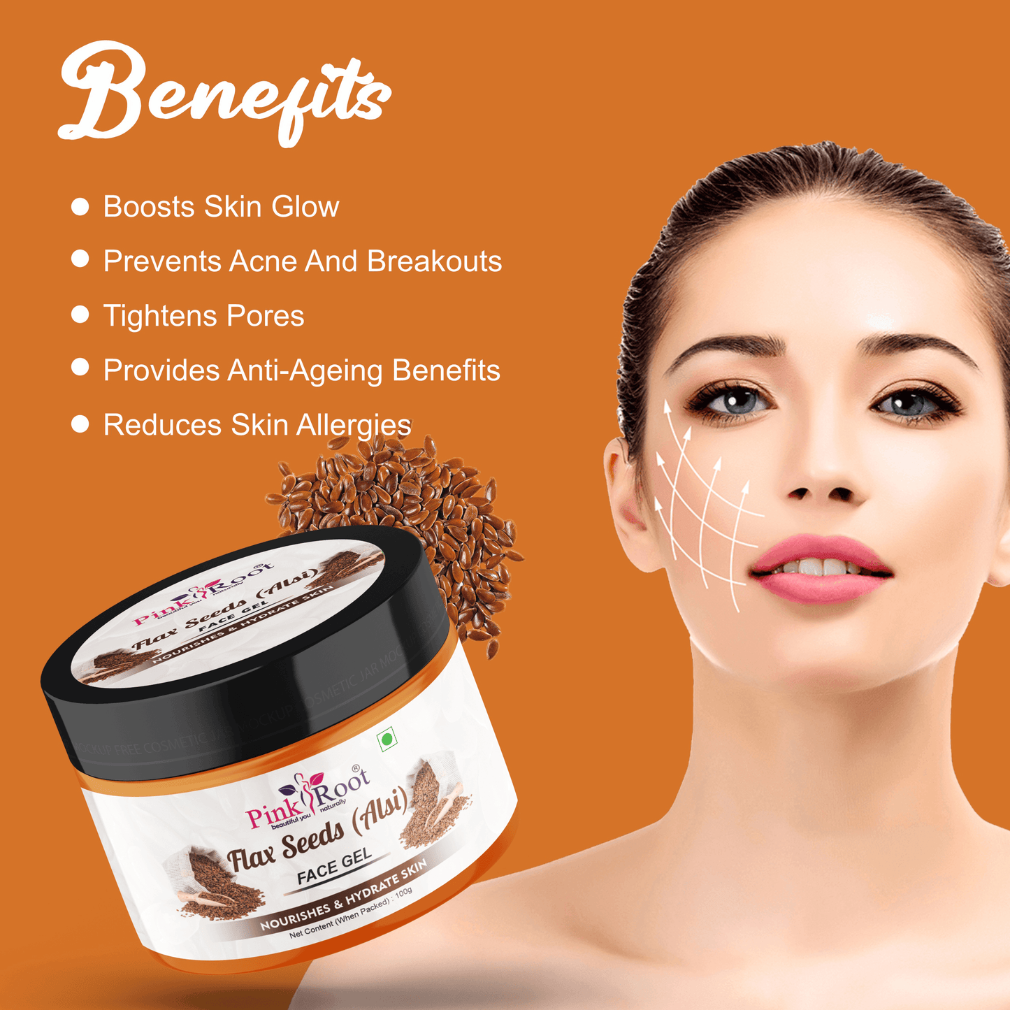 Pink Root Flaxseed Face Gel | Reduce fine lines, Skin Brightening & Whitening, Removes Tan (100 ml)