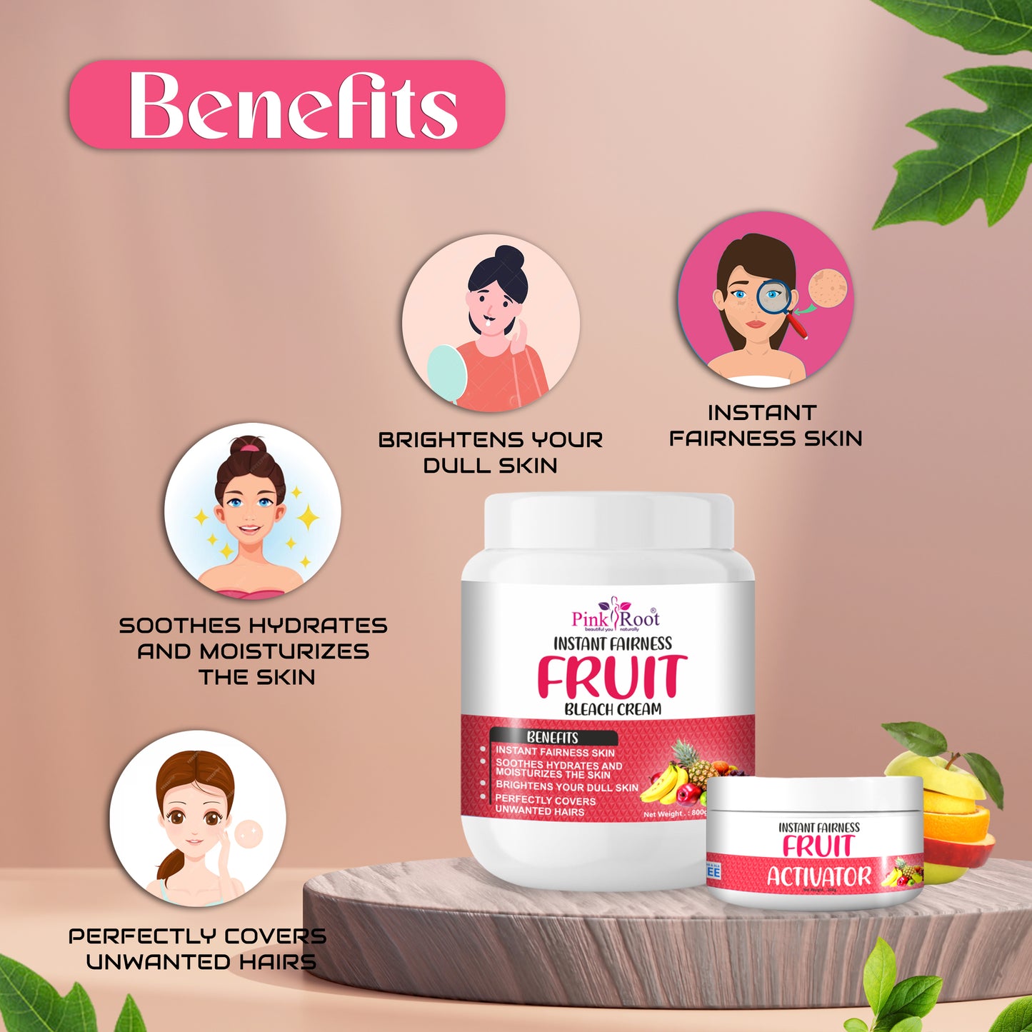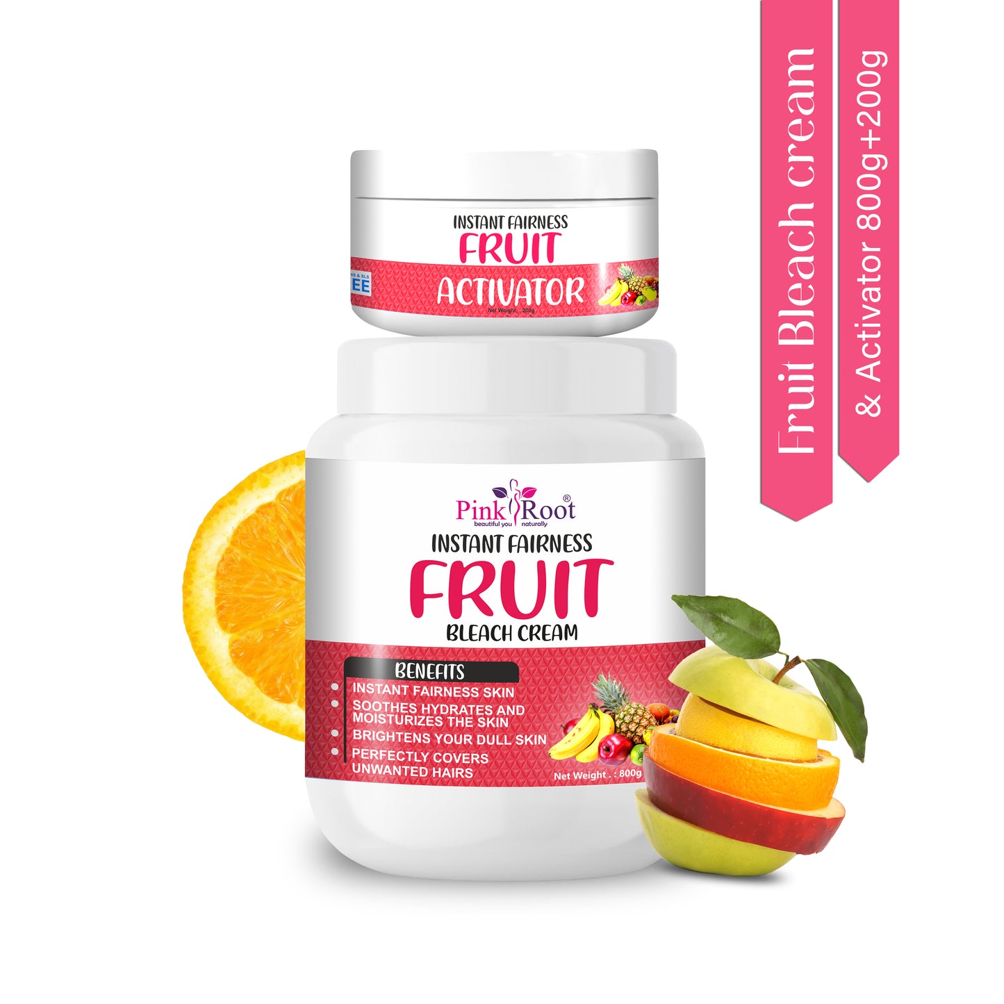 Pink Root Fruit Bleach Cream with Activator 1Kg, for Instant Fairness of Skin, Reduces Dark Spots and Tan